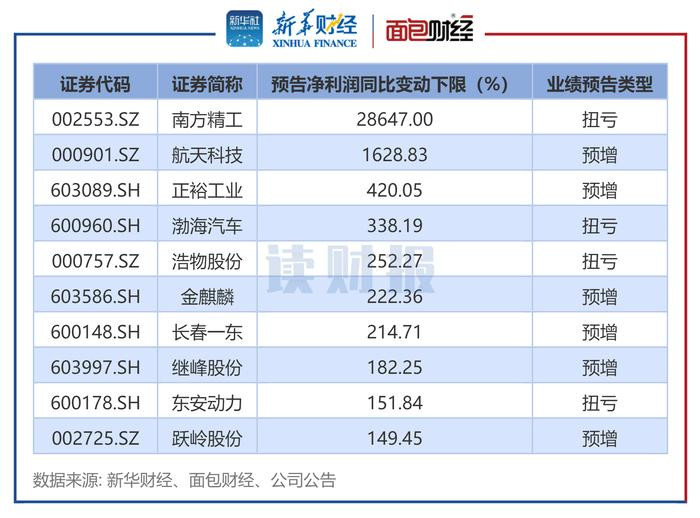 航天科技、正裕工业、渤海汽车的归母净利润同比涨幅位列第二至第四位,归母净利润同比增长下限均超过300%。