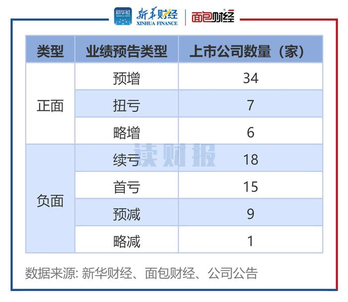 其中,业绩偏正面(包括预增、略增、扭亏)的企业合计为47家,占比约52.2%。业绩偏负面(略减、首亏、续亏、预减)的企业合计43家,占比约47.8%。